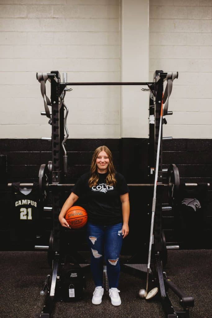 Senior Ava Marrs is making an impact at Campus High School as a dedicated multi-sport athlete in both track and field and powerlifting. She competes in shot put, discus, and javelin, while also participating in bench, squat, clean, and deadlift.